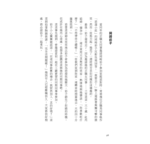 婚姻裡的精神控制與暴力、職場中的玻璃天花板、表面風光的網紅焦慮、派遣人生的不確定……