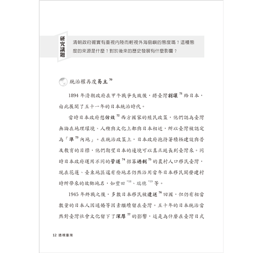許多華語學習者在語言程度達到一定水準後,常希望能找到一本簡明易懂,關於臺灣歷史與社會深層結構的中文著作。為滿足此項需求,本書由國際華語研習所教師群編著,藉著從民族、經濟、政治、科學、自然等多種面向的分析,以深入淺出的筆法,引導讀者更加了解臺灣社會的過去、現在與預測未來的發展。