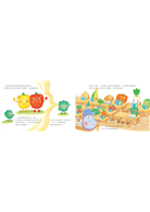 故事裡的蔬菜對話和互動直率可愛。讓孩子看了感覺親切,大人也覺得有趣,我認為是這套書吸引人的地方。