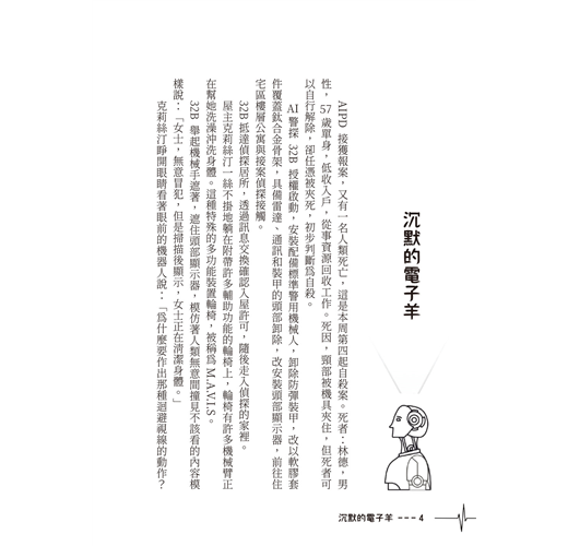 或許當你拿起這本書,期待著一場驚心動魄的人類與AI大戰,或是期待著一名科技英雄力挽狂瀾。然而,我必須坦言,這裡沒有《駭客任務》中那樣壯烈的對抗,也沒有《魔鬼終結者》中那樣毀天滅地的戰爭。