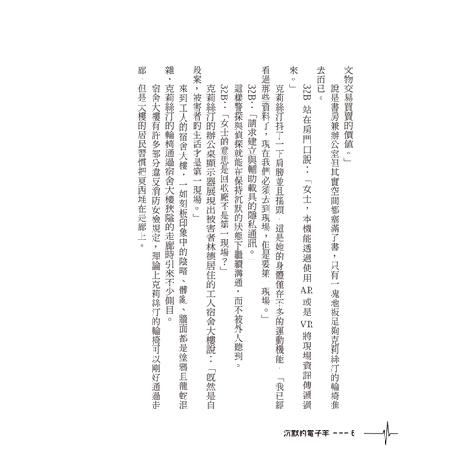 ◎書中對未來世界的想像細膩鮮活,並藉此反思數位治理或統治下的社會,人類還有自我與自由意志的存在嗎?