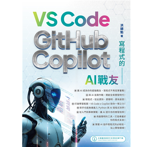本書是市面上極少數完全以「VS Code x Copilot」為核心、結合理論與實戰、從初學到專案落地的教學...