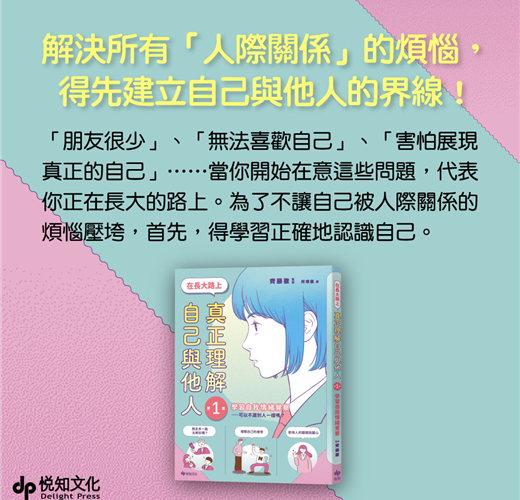 「心理學大師阿德勒曾經說:人類最大的煩惱,多半是人際關係的煩惱。對青少年來說,尤其是如此。10歲以後的孩子,漸漸邁向獨立之路,此時,同儕心裡所想的、比爸媽心裡所想的還要重要!但是也因為太在意,同時人際小圈圈出現,煩惱就會越來越多。本套書可以幫助孩子了解人際關係的狀況與界線, 進而找到自己人生的定位!」──親子、繪本作家 小熊媽張美蘭