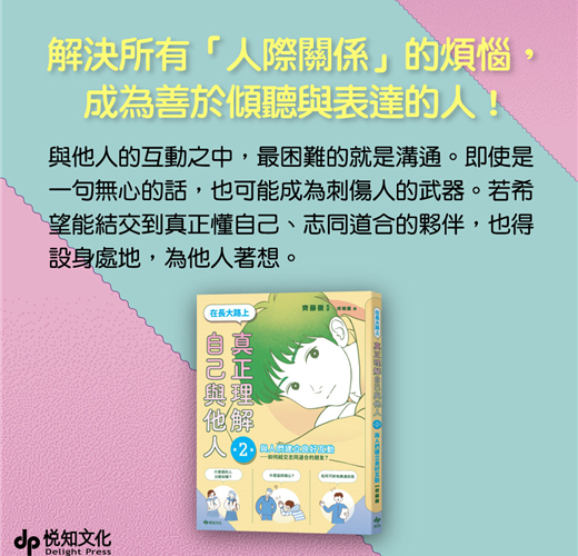 「身為一個國中輔導主任,在輔導室裡,我陪伴過許多孩子,他們在人際關係中跌跌撞撞,有時不懂如何表達自己,有時只是渴望一句被理解被接納的回應。這套《在長大路上,真正理解自己與他人》系列書,正是孩子探索情緒、理解自我與他人的一盞燈。它貼近生活,溫柔而真實,是SEL社會情緒學習最美的延伸。推薦給每位想用愛陪伴孩子成長的師長與家長,願我們一起守護孩子的心,陪他們走出一條充滿理解與連結的成長之路!」──臺北市立古亭國民中學輔導主任 王培玲