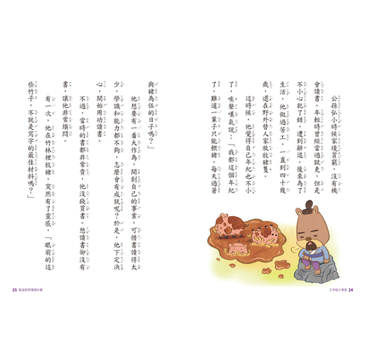 《三字經小學堂》這套書,透過重新演繹與溫暖改寫,讓孩子更容易讀懂、也讀進心裡。他們會驚喜的發現:原來那些看似高不可攀的古代名人,也曾經像自己一樣,會偷懶、會失敗、也會偷偷掉淚。但最後,他們選擇了堅持,將時間花在真正重要的事上,一步步走出屬於自己的路。