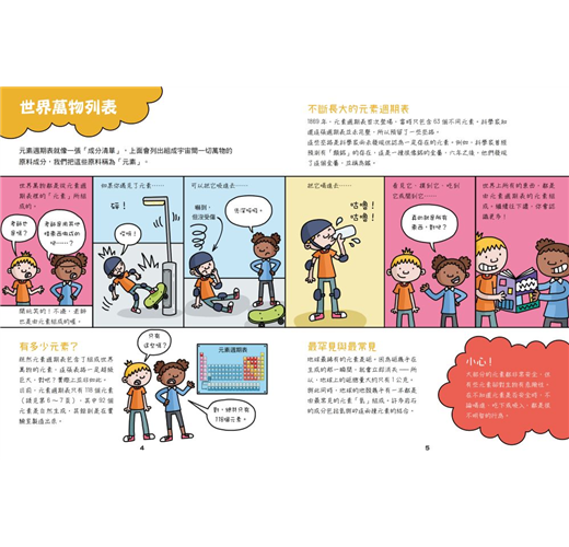 絕對不無聊,一點也不枯燥!透過趣味漫畫以及簡單圖文解說,讓孩子不懼怕元素表,打下科學基礎!