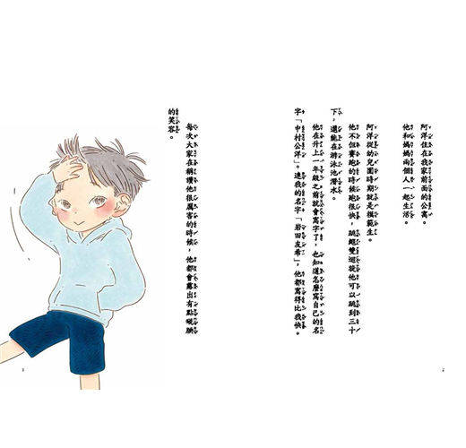 中田郁美以柔和筆觸構築出一個略帶灰色的童年世界。畫面中常留有大面積的空白、夜晚的街角、窗外的月亮——這些細節都暗示了阿洋心中的空洞與靜默。