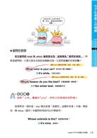 很多人並非不想把英文文法學好,而是一翻開書就一大堆密密麻麻的文字,也不管讀者準備好了沒,連主詞、動詞是什麼都沒解釋清楚,就開始五大句型SV、SVO、SVC、SVIODO、SVOC洋洋灑灑的把英文句子拆解得很高興,這樣的文法書是要初學者如何看得下去?本書為《我的第一本文法書》的重新出版,以往就以力求清楚解說為特色被廣大的讀者喜愛,被稱為「0-100歲一看就會」的文法書。並且搭配幽默的圖案來說明文法,我們一開始從英文字母跟單字的關係講起,讀者甚至可以看到許多卡通化的字母按照順序排列而呈現有意義的單字,卡通化的單字按照順序排列而呈現有意義的句子。這種有趣的呈現方式,比單純用文字敘述更能讓讀者一看就懂,印象深刻。