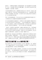 全書分為兩大部分:第一部份的內容節奏明快,簡潔扼要,介紹Java程式語言的用法和Java開發平台的核心概念。第二部分的章節則聚焦於Java核心觀念和API引用,解釋如何使用Java語言實際完成程式設計的工作。