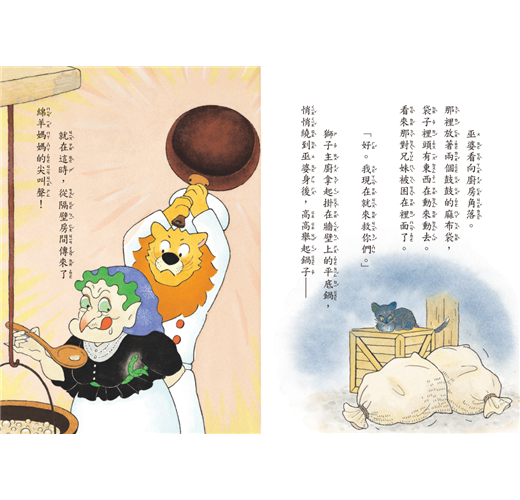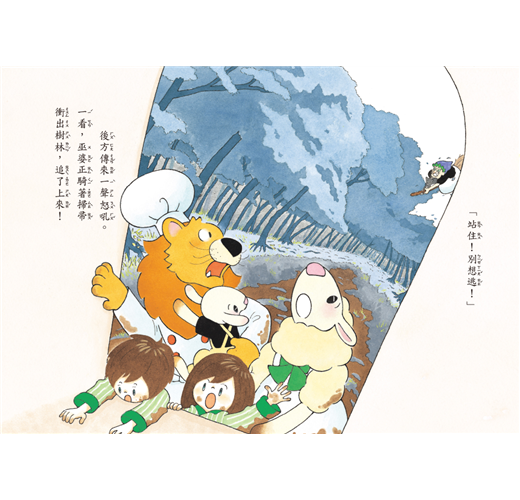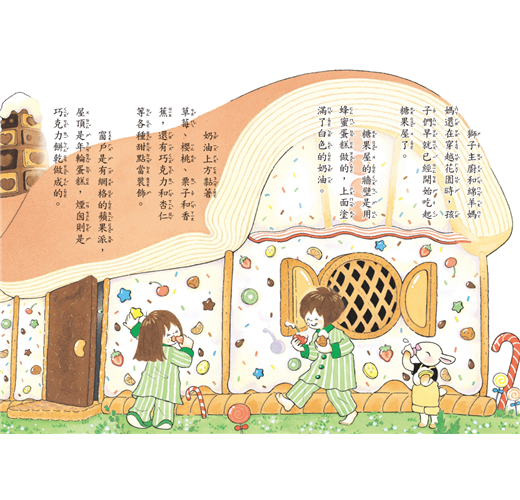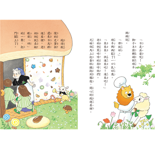於是,獅子主廚和綿羊媽媽穿越魔法冰箱,往森林裡的糖果屋,