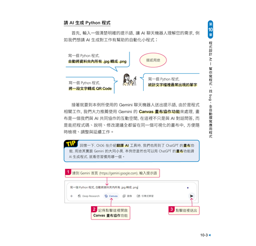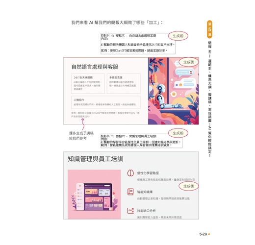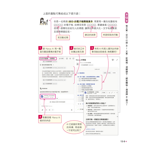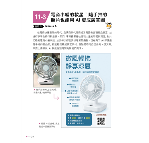 放心, 本書就是為此而生的!本書的精神很簡單:凡工作上遇到 AI 可以幫上忙的地方, 書中都會教你【用最快速、省事的 AI 工具來解決】, 不用自己摸索老半天!像是: