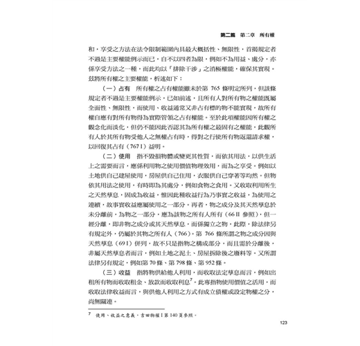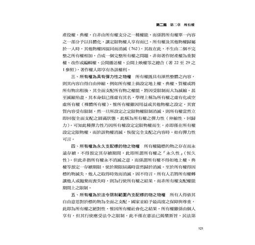 本書理論闡述,層次分明,務求詳盡,並與實務見解融會貫串,前瞻與實用兼顧,引註多而新,是進修物權法之最佳素材,研究物權法之重要指南,經由實務案例之引用及評析,更使物權法奠基於實際,內容生活化、實用化。本書另闢「延伸探討」,引領新思維,開啟新視野,或以不同視角,審思爭議問題,拋磚引玉,增添物權法園地之綠意花香。又擔保物權乃企業融資之重要工具,本書就擔保物權論述最詳,並講究可操作性,實為融資實務之法學寶典。