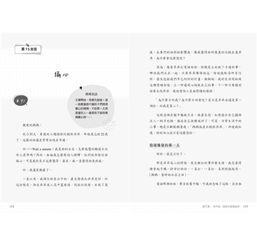 收到這本書信提案的時候,我很快就答應了。因為我真心希望,有更多的家庭能像我和媽媽一樣,慢慢從「嚴母與孩子」,變成「可以聊天、可以一起長大」的朋友。