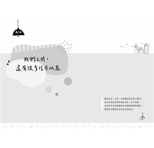 當你翻開這本書,請先放慢一下腳步,深呼吸——你現在翻開的,不只是一本「教養書」,也不是一本文青筆調的「家書選集」。它,是我們一家三口,一封封誠實書寫的過程。是媽媽與孩子、姐姐與弟弟、成年的大人與正在長大的少年,透過文字,好好坐下來對話的歷程。