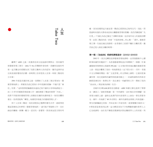 ‧這是一本以藝術管理為主題的文集,作者大學畢業前已認定藝術管理是他的「感召」,希望「把自己的愛好與最多人分享」,他以前線藝術管理人、培訓人和藝術「有心人」(董事和委員)等身份在江湖逐夢接近四十年。