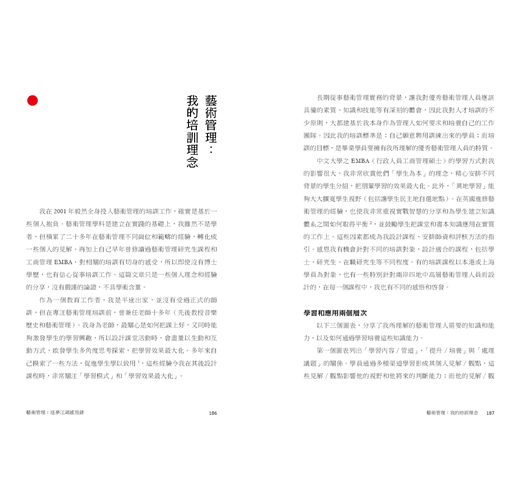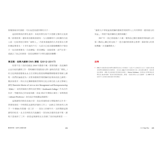 5.此書是鄭新文教授凝結半生藝管智慧的分享,書中既有作為一線藝術管理人的經歷和感悟,也有對文化生態和政策的深度思辨,更以「師者」視角拆解了藝術管理人才培養的底層邏輯,令我深深懷念在香港攻讀鄭教授創辦的藝術管理碩士EMA課程的時光,他以「傳幫帶」的方式培養了來自不同城市的中高階藝管人,我也深受啟發。