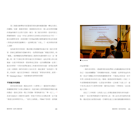 2. 我常常被問到一個問題:「我應該以藝術為職業嗎?」和「藝術管理和一般商業管理有什麼分別?」看完新文這本書,我懂得回答了。