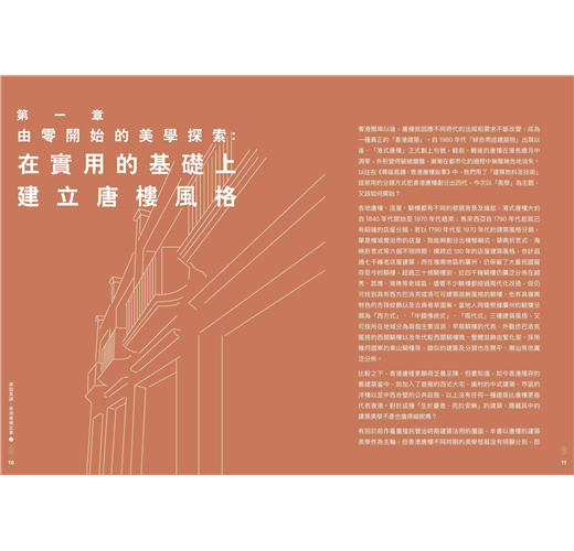 衍生自嶺南竹筒屋而與世界藝術潮流接軌的香港唐樓,風格看似雜亂無章,卻又跟着建築美學的主軸而演變。本書作者要說的,是一個看似不存在、卻又欲罷不能的唐樓美學故事。