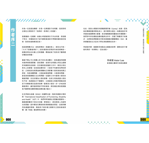 為了讓家長有實際可行的方法,作者團隊分享多個臨床常用的介入策略,循序漸進地引導孩子接受新食物、建立進食信心與習慣,並收錄真實個案故事,讓讀者更直觀地理解不同孩子的挑戰與轉變。