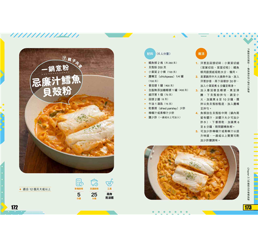一鍋意粉:忌廉汁鱈魚貝殼粉.............................................................172