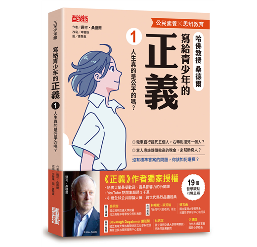 ◎我曾讓學生看邁可•桑德爾教授在哈佛大學公開課的影片,共同感受世界一流大學的思辨氛圍和課堂風景。喜聞《正義》被以適合青少年的方式改寫,輔以彩色圖片和簡潔對話,確實會降低閱讀的門檻,提升青少年的接受度!越多孩子從小學習理性思辨,未來就會有更多高品格的理性公民,我們的民主就會更進步一點。──林暘斌、梁芳瑜/「我們不只是老師」粉專版主