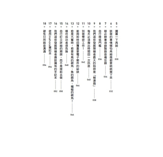 多數人看似只要稍加努力就能改善,但對於發展障礙者來說,卻格外艱難。因此,坊間許多商業書籍所提的方法,並不適用於他們。因此,本書由身為發展障礙者的作者,整理出一套簡單可模仿、能持續在工作中實踐、切實可行的生活技巧(Life‑hack)。