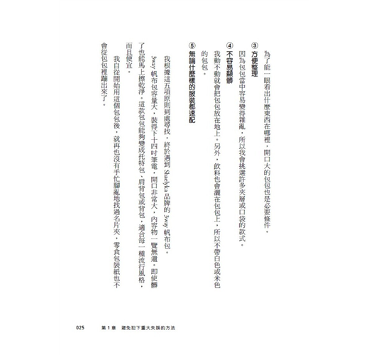 為了能一眼看出什麼東西在哪裡,開口大的包包也是必要條件。