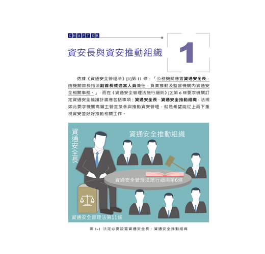 本書第1章〈資安長與資安推動組織〉內容是各章中最豐富者,彰顯作者特別凸顯資安長作為組織資安領頭羊角色及職能當責的重要性,建議讀者可以多花一點時間細細品讀,再逐章開展。