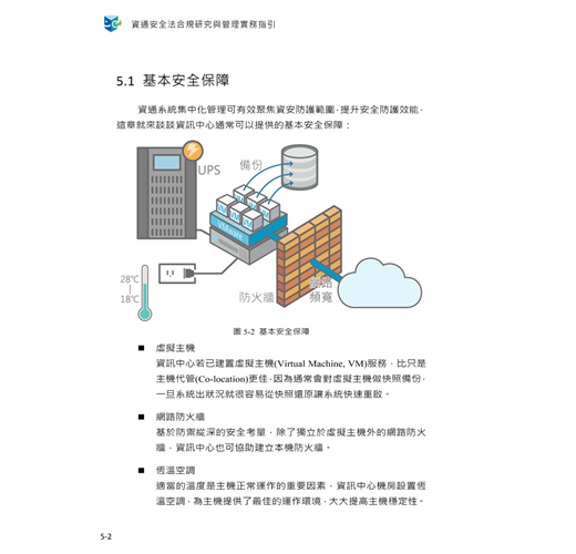 2.網路防火牆:基於防禦緃深的安全考量,除了獨立於虛擬主機外的網路防火牆,資訊中心也可協助建立本機防火牆。
