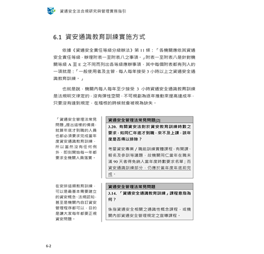 陳教授的著作有幾項值得向大家推薦的特色如下:1.落實資安法遵最完整的實作寶典:全面盤點《資安法》及逐一重點解析,復依作者多年的實作印證經驗,提供讀者最完整具體、簡明易懂及創新的實作指引,讓讀者猶如擁有一本可以倍增資安管理功力的案頭寶典。2.全觀的、多視角的法遵框架建構及有條不紊的實施步驟指引:從策略、管理及技術三個層面,逐一探討每一面向及細項的精義重點,從資安長與推動組織、核心業務及核心系統、風險評鑑方法、委外廠商管理及資安認知等系列,有序地逐一導引讀者解鎖《資安法》奧義及遵循實施。3.豐富多元的實用資源:提供實用的工具、方法、模板、表單、宣導素材及網路資源,讓即使不是資安專業的讀者也可以迅速靈活運用及依樣操作,提升法遵合規作業效率。