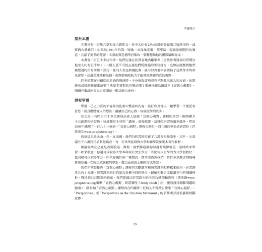 它從聖經視野確認宣教的中心性,從歷史視野回顧福音傳播的軌跡,從文化視野了解福音如何兼容文化又超越文化,從策略視野探討宣教者如何運用各種資源工具將真理介紹給特定族群,是每一位胸懷普世宣教者必備的知識工具書。