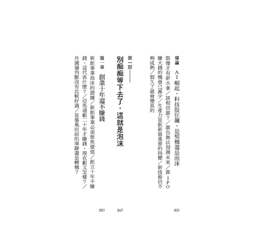 但也正是觀察到許多新創個股股價的快速高漲與回落,我越來越警覺:我們其實不缺新技術名詞,更不缺滿腔熱情的創辦人;我們真正缺乏的,是能夠看穿泡沫的能力。
