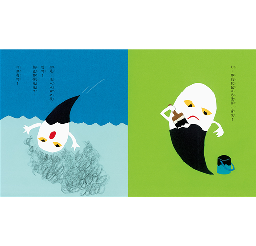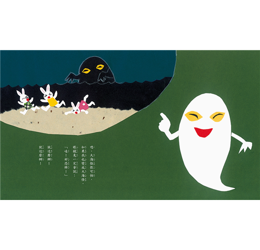 小妖怪為了嚇眼鏡兔一大跳,真的好努力啊!不但說練習就練習,學會了游泳,還嘗試了不同辦法,把自己辛苦變成了黑色模樣,可是這一切努力都因為眼鏡兔沒戴眼鏡,所以沒有被看見。有時孩子很努力的想要做一件事,最後的結果可能會因為各種不可預測的原因,與預期的不一樣,這個時候,也要用故事裡幽默輕鬆的態度來面對喔!