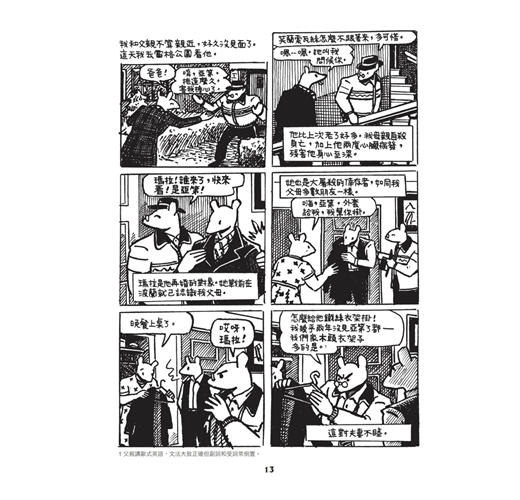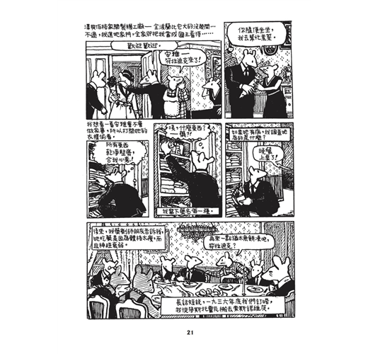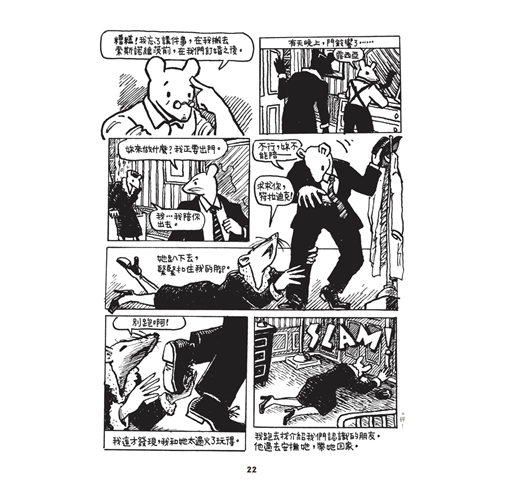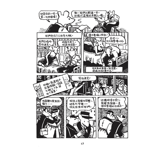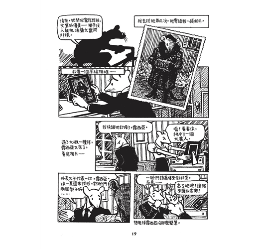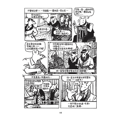 曾經在2012年的法國安古蘭漫畫節參觀過「鼠族」的原稿展,作者以父親口述家族經歷為軸,記錄下納粹屠殺血淚史,破天荒獲得普立茲獎殊榮。把猶太人畫成老鼠,納粹則畫成貓,這是我僅有的資訊,小而工整的分鏡,大量未經翻譯的文字,讓我對內容更加好奇,展區把封面那張兩隻老鼠依偎著的原稿放在某個重要的位置,一旁對照著一張模糊的黑白照片,構圖一模一樣,只是老鼠換成一對男女,穿著與原稿相同的衣服,用相同的表情看著遠處,我呆立著,久久不能自己……