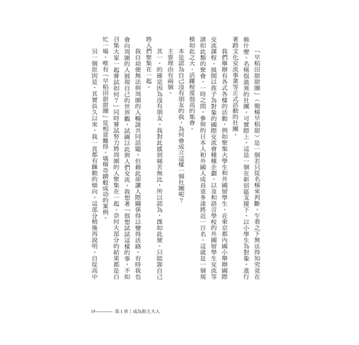 人類會因為想排除那些多樣性、異質性,而爭奪不休。然而同時,卻也因為那些多樣性、異質性,才得以彼此依賴、相互認可。「早稻田甜甜圈」的經歷也讓我漸漸有此體悟。