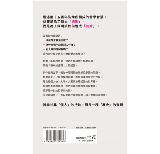 而本書,即是述說我如何與哲學相遇、以何種方法在某種意義上從深淵中被哲學拯救的故事。在此過程中,我希望能讓讀者們體悟到類似「哲學這兩個字原來是這個意思」「哲學竟然這麼有用!」「哲學能派上用場」的感覺與啟發。