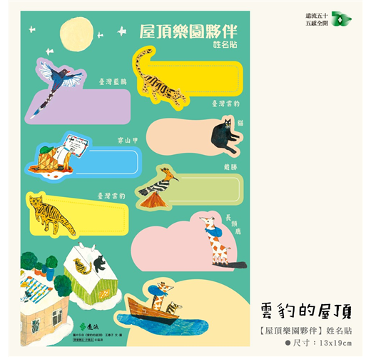 於是,我想到讓繪本裡的臺灣雲豹寫信跟朋友道平安,且在故事的最後帶出臺灣雲豹並未離開,而是和其他動物一起住在城市裡,但是依照往高處遷徙躲藏的習性,大家都藏匿到屋頂上,悄悄的生活在「屋頂森林樂園」……