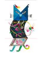 圖案組合的角色創意還不只這樣呢,同樣以藍色貓咪為例,可以是:「風箏樓梯貓」、「迷宮雨傘貓」、「茶壺貓戰士」、「四腳飛機貓」或「城市星星貓」等,也可以編成小故事,如:「貓咪上樓放風箏」;或是將豬頭、迷宮和茶壺腳,編成「小豬下樓梯出迷宮,小貓請他喝喝茶歇歇腳。」