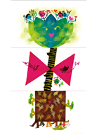 不同於一般翻翻書,此書的獨特性在於不同造型組合所形成的視覺趣味。這是基於視覺教育構想而製作的,為的是讓孩子以眼睛來觀看、體驗各種不同造型差異和組合的可能和效果,就如同認識、聆聽不同聲音或和弦的音感。