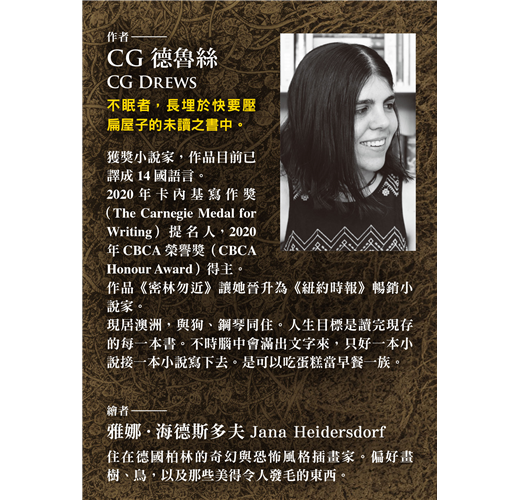 ※這本心理驚悚小說藏滿了童話、民間傳說以及各樣怪物,讀完仍深陷恐怖浪漫的後勁,久久難忘。先預祝好運好夢,並希望你不會被勾住。──邦諾書店讀者心得