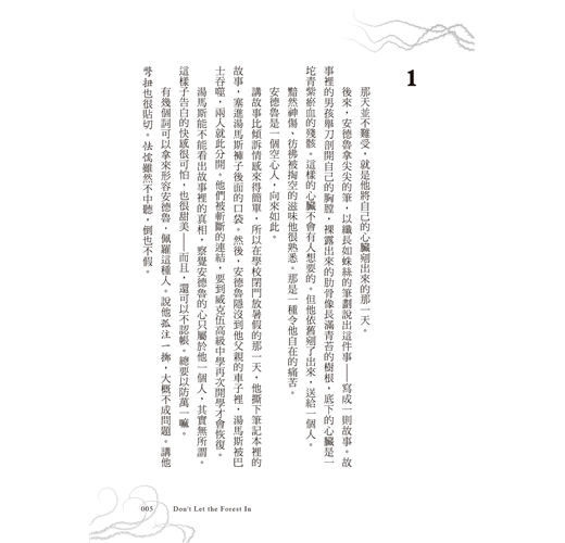 苦悶的校園生活,讓安德魯躲進奇幻詭怪的童話故事裡尋找安慰,但他願意偶爾面對一下現實,只因為這裡有他喜歡的人──湯馬斯,一個總是因為作畫而手指髒污,滿頭亂髮如火紅秋葉的傢伙。