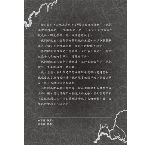 獻給在怪誕童話利齒間找尋靈魂歸屬的讀者。──Andrew Joseph White,《紐約時報》暢銷書作者