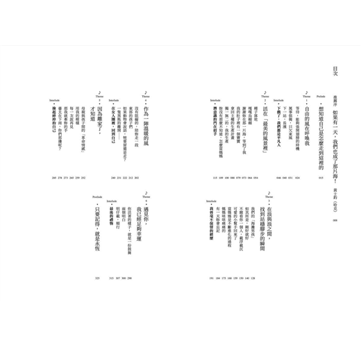 謝謝書裡的所有相遇,滋養和豐厚了我的生命;謝謝家人、先生無條件的支持,讓我能徜徉在書寫的世界裡,繼續活出獨特;謝謝編輯清瑞,兩年來陪著與見證,我將生命梳理成這些長相的旅程。