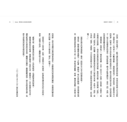 當我整理出一篇又一篇的故事時,對於出版計畫也越發感到期待,我不得不承認,這些故事並非寫給自己看而已。我更相信那些我所珍視的人生百味,盡力描繪的每一個「渴望時間能暫停」的瞬間,都值得被好好看見,可能也有機會讓某個角落的你,感到「被懂了、被陪伴了」。殷殷期盼,讀者能在閱讀某個篇章的時刻,如我一樣,更懂了「自己的模樣」。