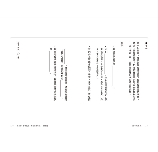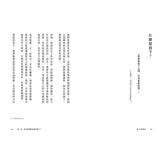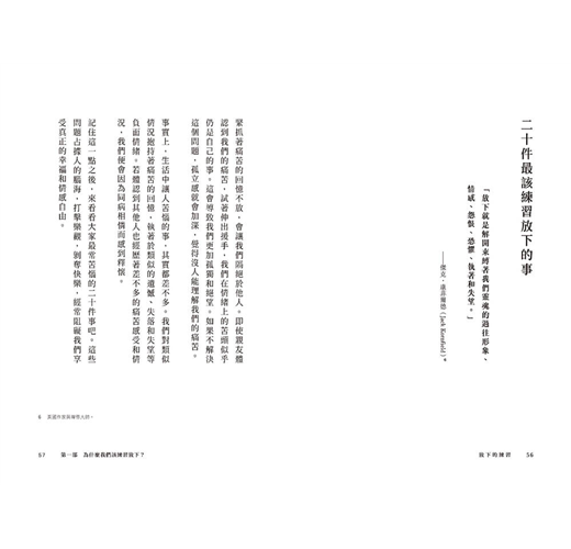 ★透過循序漸進的操作與實際練習,讓讀者學習什麼時候該「放下」及「放下」的練習方法。