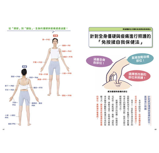 ◎涵蓋從頭到腳的痠痛舒緩方法,並針對失眠、便祕、呼吸困難等不適,提供結合東方醫學與物理治療的有效對策!