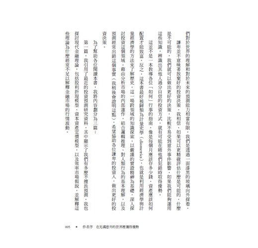 告別華爾街的喧囂與盲從,本書將帶你以實證為基礎,建立全新的投資思維,在充滿意外的世界裡,找到一條穩健的致勝之路。