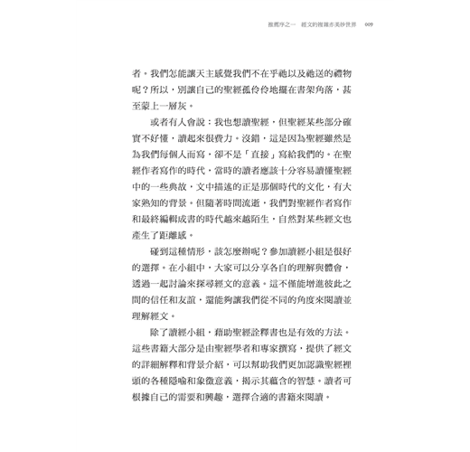◆ 深入淺出、親近福音的研經材料,有助於擴展讀經的視野。