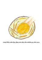 When I was born, Dad and Mom called me ghap. When the eyes of the sakura open, Mom scattered me onto the farmland. When I was two months old, two tender leaves spruoted from my head. Then half a month later, my feet worked hard to take root downward. I slowly grew taller and stronger when I was three months old. At the age of four months, Dad and Mom weeded. When I was at the age of five months, Dad protected me with bird repellent. At the age of six month, I often bowed to the sky. At the time that my parents started to reap. I have many siblings.