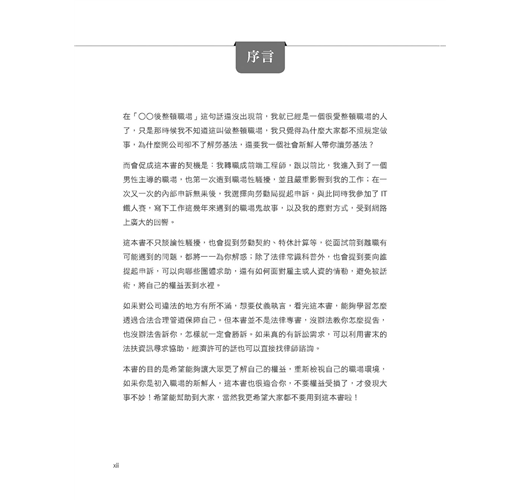 不僅適合初入職場的新鮮人閱讀,更是那些已經投入職場、卻對勞基法與相關權益認識有限的讀者,一本實用且值得細讀的工具書。